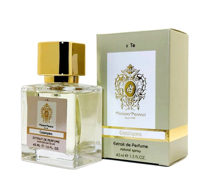 Tiziana Terenzi Cassiopea – мягкий, таинственный, цветочно-фруктовый унисекс аромат, выпущенный в 2015 году в рамках «Лунной коллекции». Вдохновением для создания аромата послужило созвездие Кассиопея. Композиция начинает звучать с аккордов таинственного папоротника, свежего лимона, сочной черной смородины, энергичной маракуйи. Сердечные ноты наполнены яркой пряностью цветущей гвоздики, трогательной невинностью ландыша и роскошью пленительной чайной розы. Безумно притягательный шлейф соткан из бархатисто-сливочного сандала, нежнейших бобов тонка и теплого мускуса.